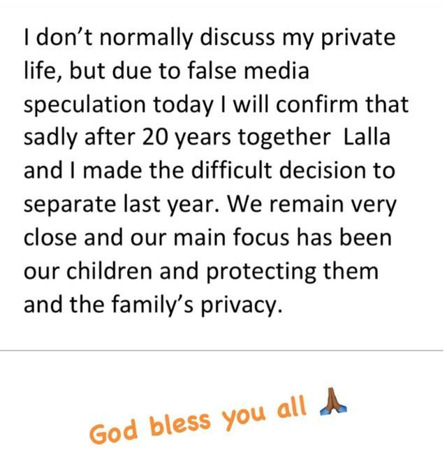 德罗巴随后也在社交媒体上发文回应此事,他表示自己与前妻已在去年分手,但仍是朋友,并希望大家给予他们一家足够的隐私。