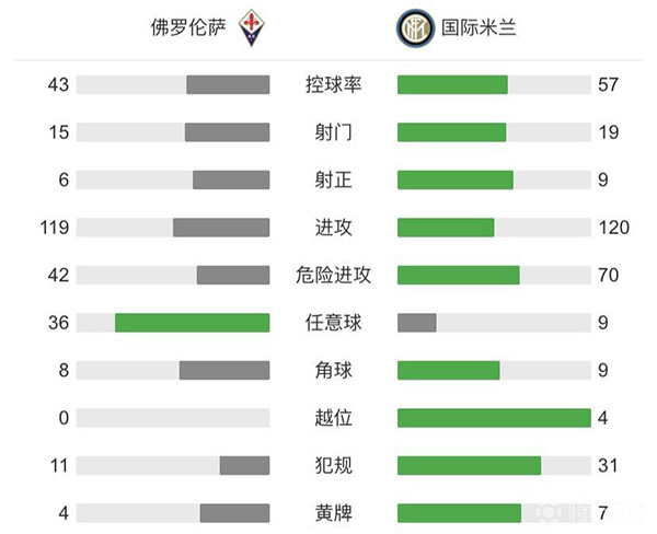 查看:佛罗伦萨vs国际米兰 全场录像技术统计:
