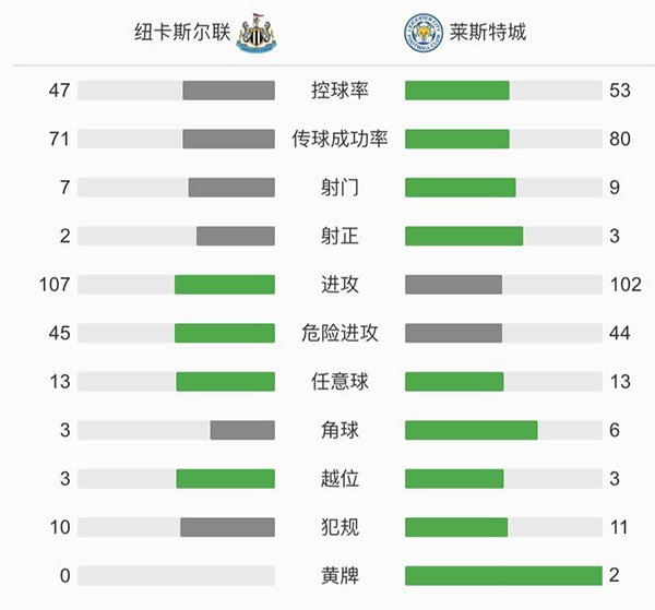 查看:纽卡斯尔vs莱斯特城 全场录像技术统计: