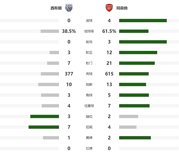 查看:西布朗vs阿森纳 全场录像技术统计: