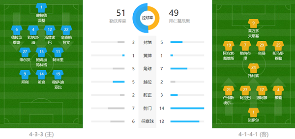 查看:勒沃库森vs拜仁 全场录像 技术统计: