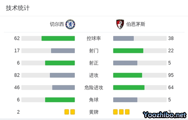 全场比赛结束,切尔西2-1伯恩茅斯!