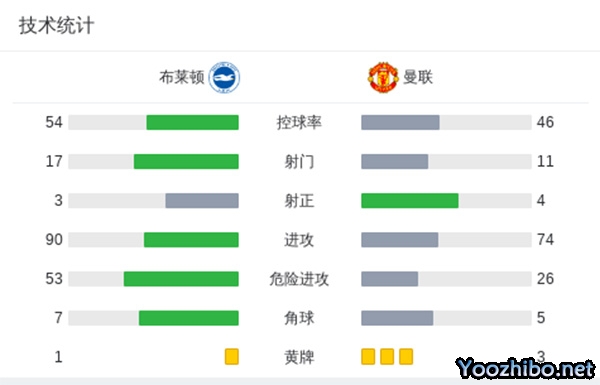 全场比赛结束,曼联2-0布莱顿。