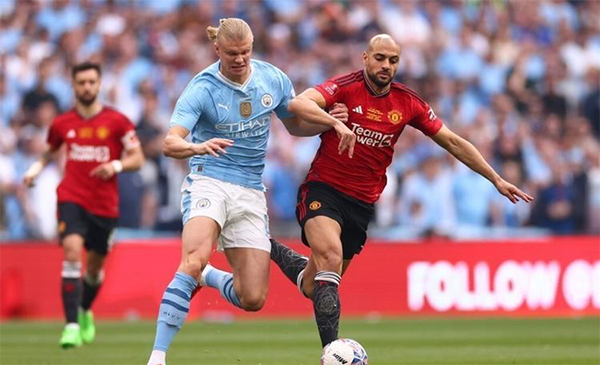 24直播网讯 在北京时间5月26日凌晨结束足总杯决赛中,曼城爆冷1-2不敌曼联,遗憾无缘卫冕。而本场比赛,曼城中锋哈兰德再次踢出了郁闷1战,不仅击中门框,两次禁区内摔倒都未能为球队赢得点球。