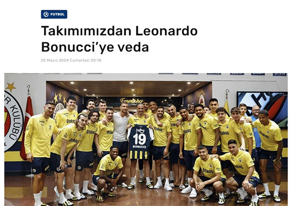24直播网讯 北京时间5月26日,土超豪门费内巴切俱乐部官方宣布,效力该队的37岁意大利中卫博努奇,将于本赛季结束后正式退役。