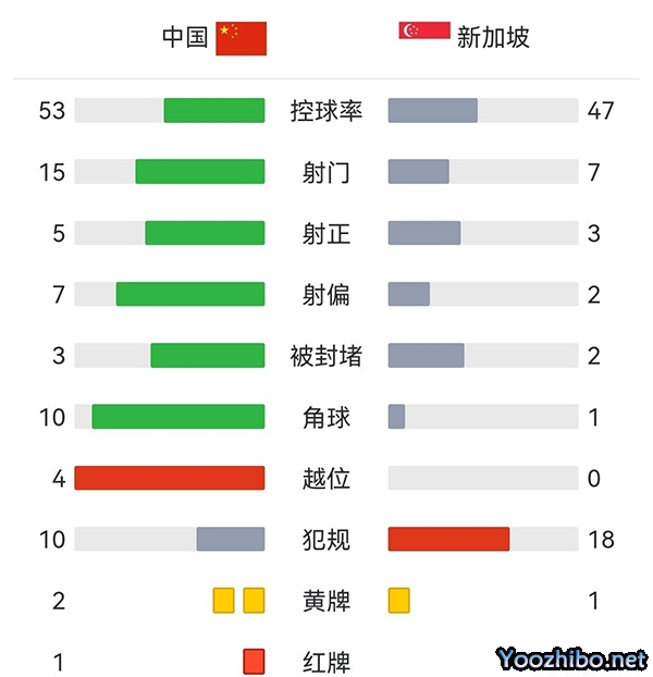 第22分钟,新加坡中圈开球长传,刘洋眼神防守致命漏人,斯图尔特插上传中,无人盯防的拉姆利头球破门,中国1-1新加坡!