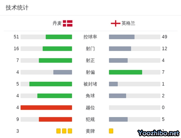 最终全场比赛结束,英格兰1-1丹麦。