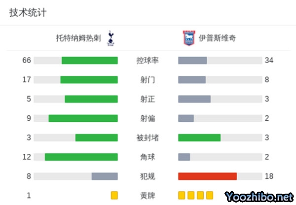 最终热刺1-2爆冷不敌伊普斯维奇。