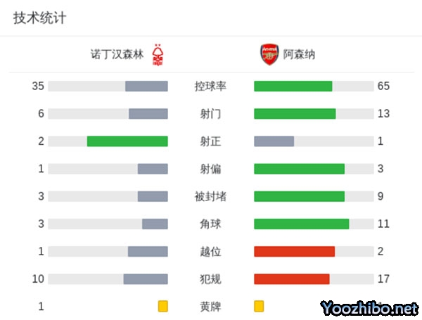 最终阿森纳0-0诺丁汉森林,两轮不胜后距榜首10分。