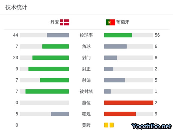全场比赛结束,丹麦1-0击败葡萄牙,两回合比赛占得先机。