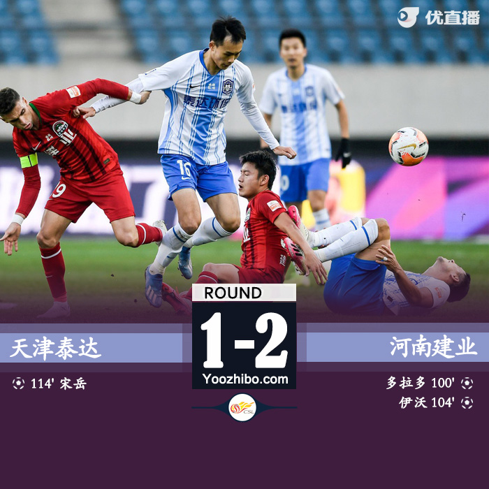 24直播网讯:北京时间11月10日15点30分,中超9-10名排位赛次回合打响,天津泰达对阵河南建业。上半时两队威胁进攻不多,周定洋无人防守下的打门擦柱而出。下半场刘若钒头球破门被吹越位无效,最终双方0-0进入加时赛。加时赛上半场多拉多远射破门打破僵局,随后伊沃主罚点球命中;宋岳头球破门扳回一球,最终建业总比分2-1战胜泰达,获得第9名,泰达获得第10名。