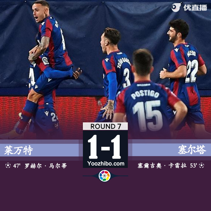 北京时间10月27日凌晨,2020-2021赛季欧洲五大联赛结束最新一轮比赛争夺。其中,莱万特主场迎战塞尔塔,马尔蒂破门卡雷拉处子球,莱万特1-1塞尔塔。