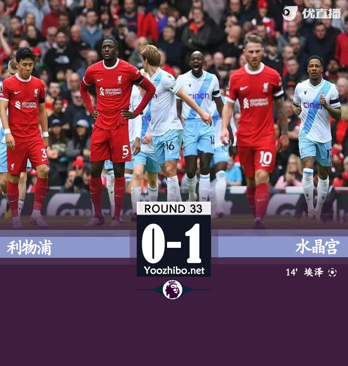 北京时间4月14日,英超联赛第33轮,利物浦在主场迎战水晶宫。比赛第14分钟,埃泽率先得分,第18分钟,范戴克滑到送马特塔单刀,罗伯逊贡献门线解围,第27分钟,远藤航乱战中击中横梁。最终利物浦主场0-1水晶宫连续3场比赛不胜,落后目前榜首曼城2分。