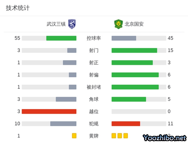 24直播网讯 北京时间3月30日中超联赛第3轮,武汉三镇主场对阵北京国安。上半场李可远射打高,达兰远射稍稍踢偏,杨立瑜停球失良机,李可蹬踏染黄,下半场林良铭头球被扑,阿德本罗连续造险,法比奥倒钩一锤定音。最终比分武汉三镇0-1北京国安。