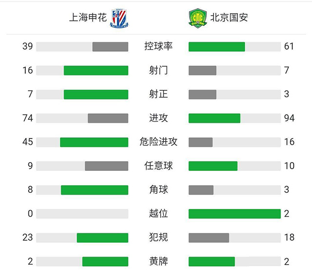 全场比赛结束,上海申花2-1北京国安,取得联赛开门红。