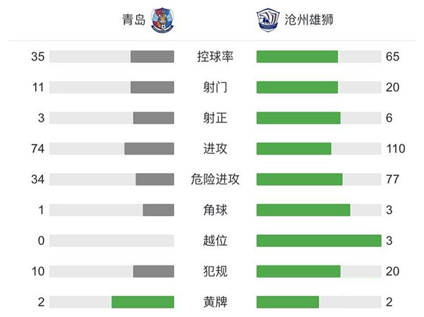全场比赛结束,青岛2-1战胜沧州,取得新赛季开门红。