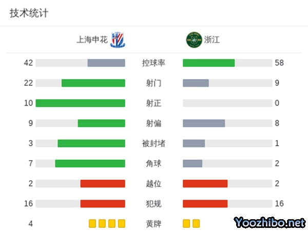 申花4-0浙江 马莱莱 岳鑫先后被2黄罚下