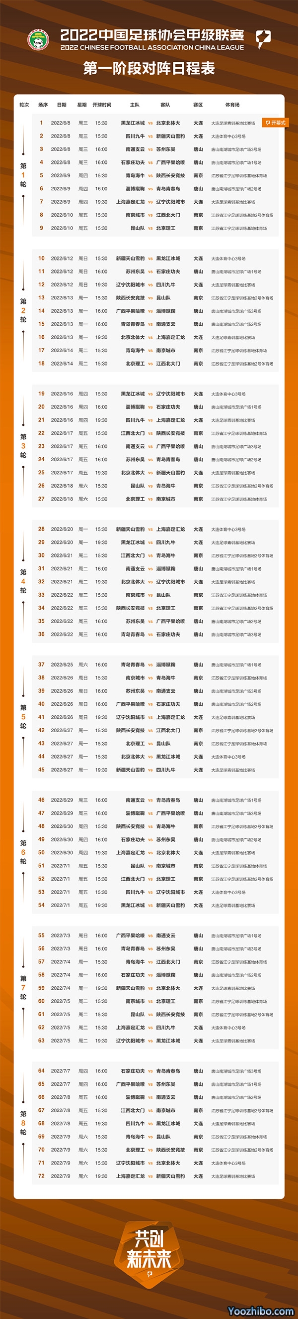 | 2022赛季中甲联赛第一阶段赛程表 | ||||