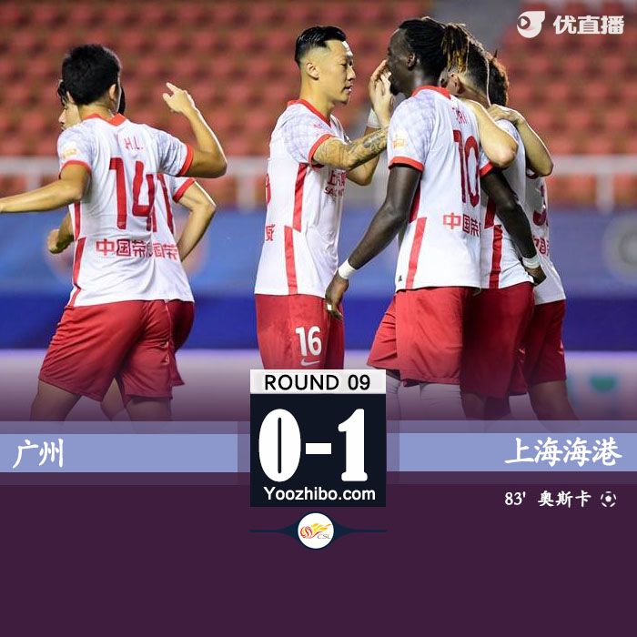 北京时间7月8日晚上19:30,中超联赛第9轮,上海海港对阵广州。上半场,恩迪亚耶中框,保利尼奥错失良机,郑圣雄中楣还以颜色。半场战罢,上海海港暂0-0广州。下半场,艾菲尔丁送点,奥斯卡操刀命中。全场结束,上海海港1-0广州。