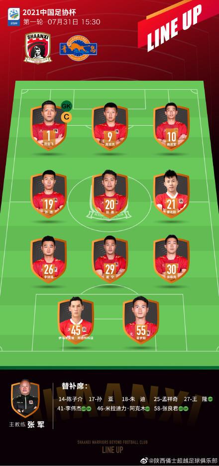 24直播网讯 北京时间今天下午,2021赛季足协杯第一轮,在陕西俑士超越与青岛海牛的比赛中,42岁前国门刘云飞首发出场。