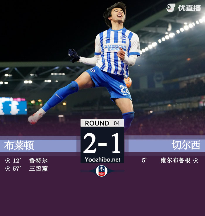 切尔西1-2布莱顿止步足总杯32强 帕尔默造乌龙三笘薰建功