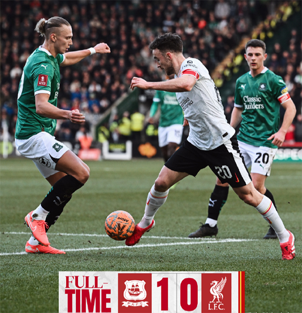 利物浦0-1普利茅斯止步足总杯32强 埃利奥特送点戈麦斯伤退